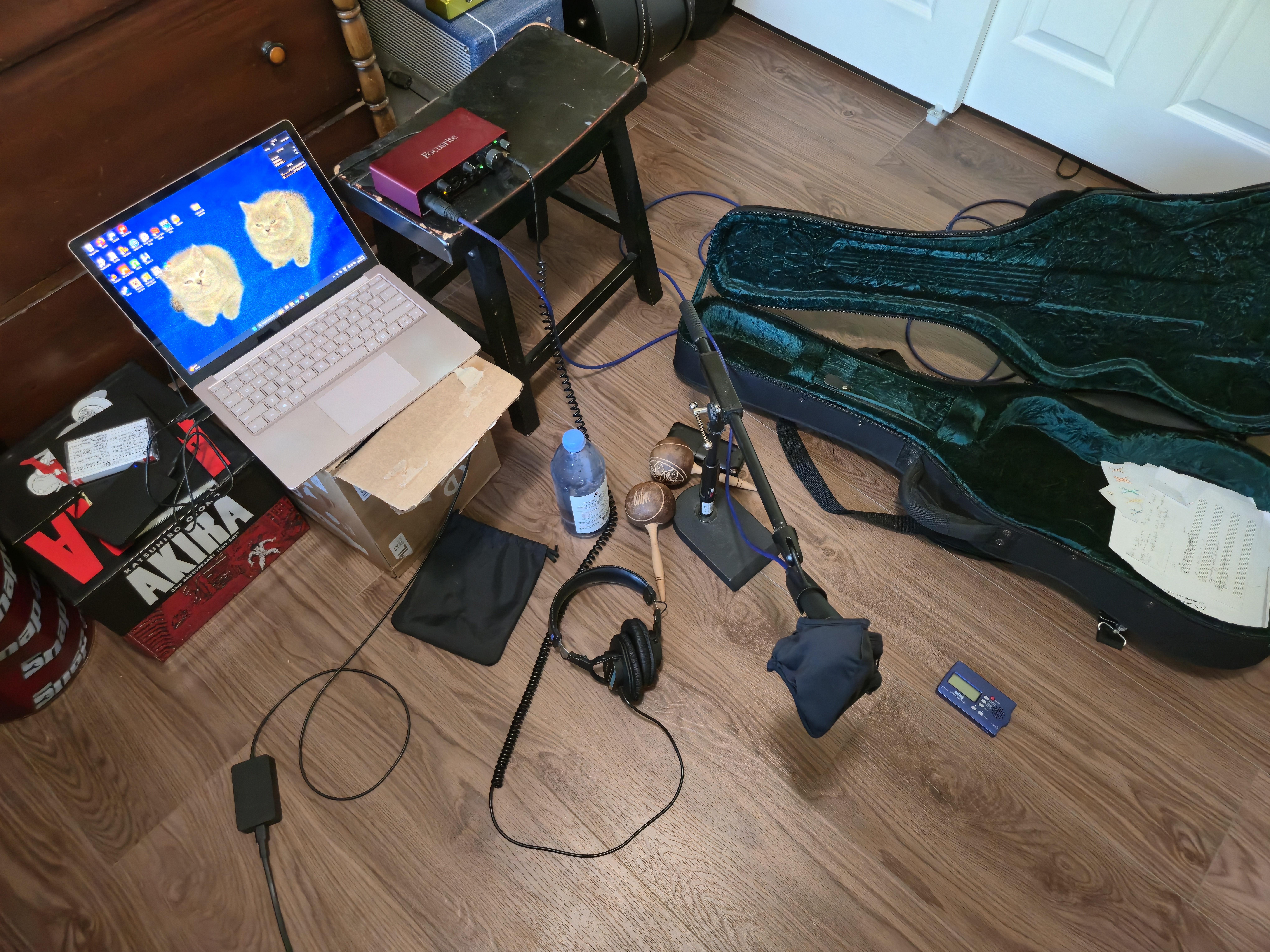 The recording setup for my first album. The entire base of it was recorded on this here floor. Great times, actually!